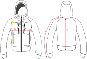 | Szerokość pod pachami (B) | 49 cm | 53 cm | 57 cm | 63 cm | 67 cm | 71 cm |