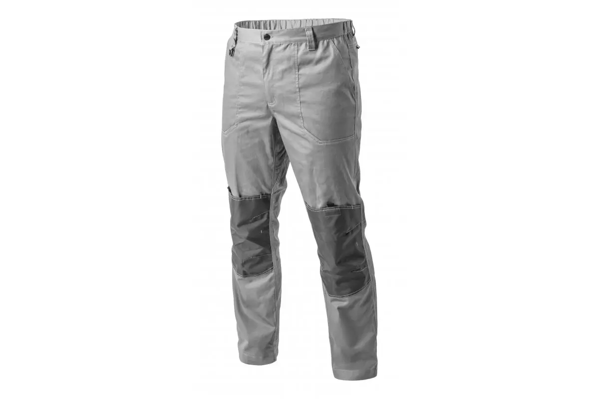 Starannie wykonane męskie spodnie ochronne. Wysokiej jakości materiały i mocny splot zapewniają wytrzymałość i wysoki komfort użytkowania. Tkanina 100% bawełna chroni przed nadmiernym poceniem i dyskomfortem, nie odbarwia się i nie mechaci. Ponadto techniczny krój nie ogranicza ruchów. Zastosowane detale odblaskowe pozwalają zwiększyć bezpieczeństwo pracy po zmroku. Spodnie dostępne są w modnym jasnoszarym kolorze z niebieskimi akcentami i szerokiej gamie rozmiarów (od S do 3XL). Idealne dla pracowników produkcyjnych oraz budowalnych. Polecane również monterom, serwisantom oraz technikom.