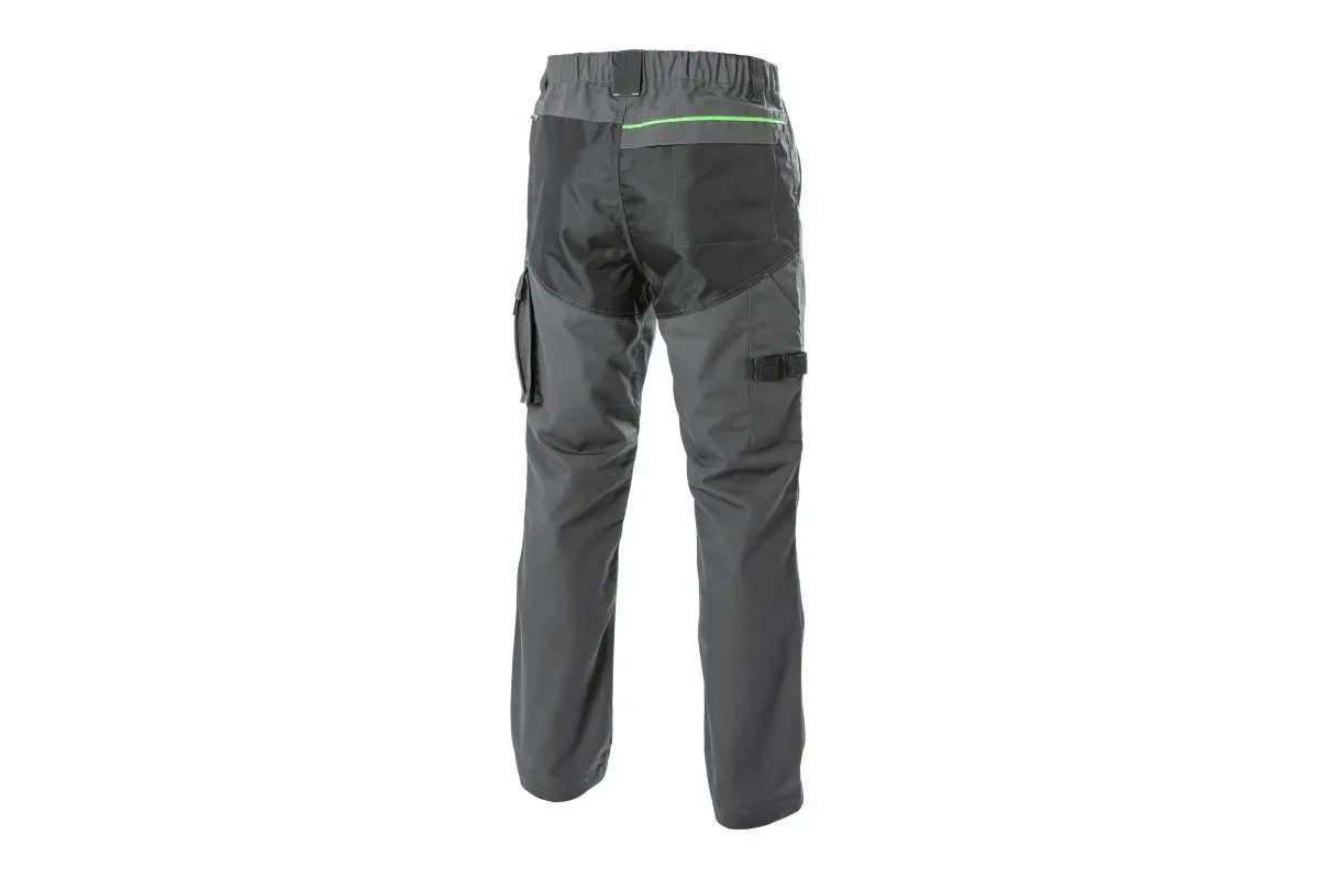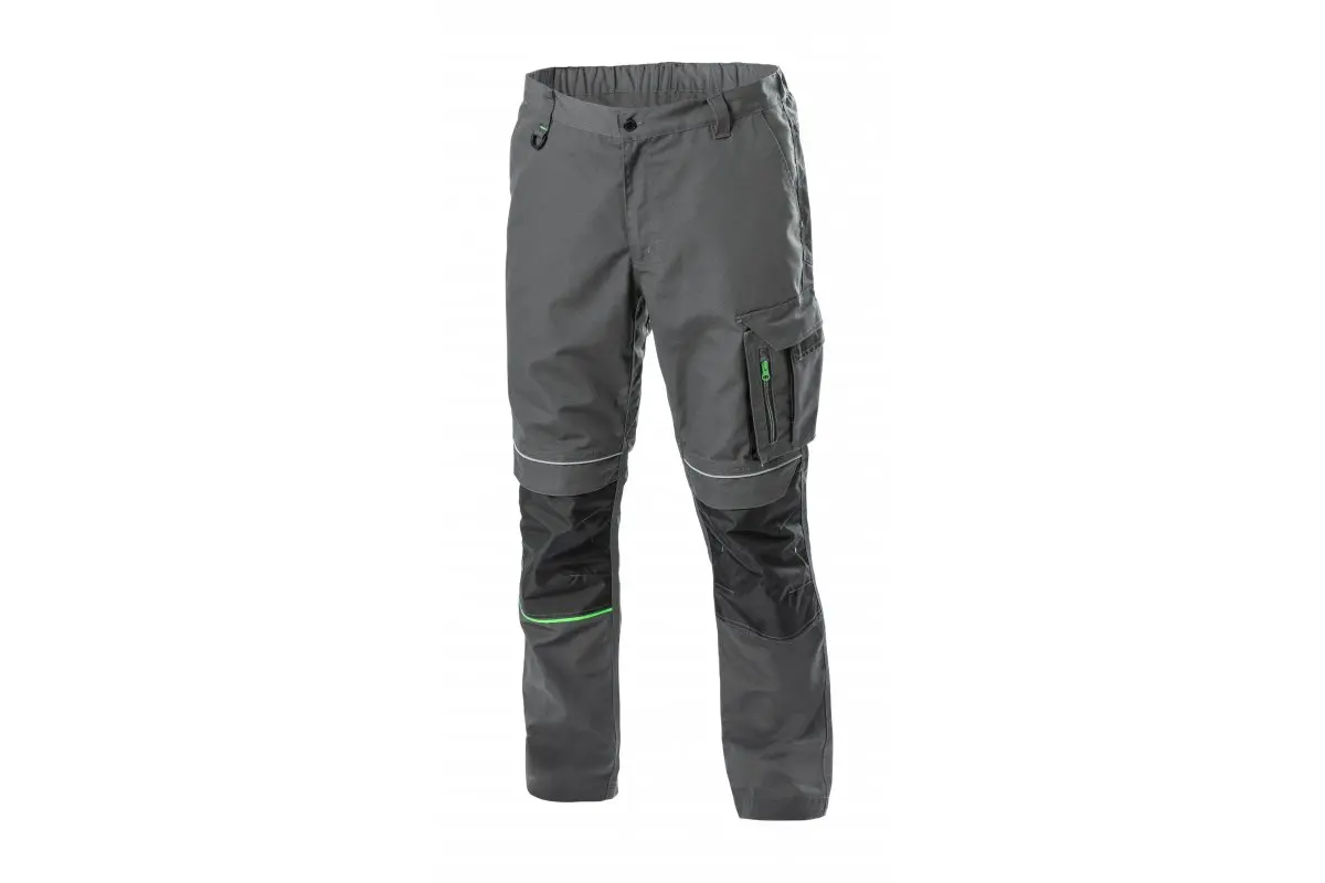 Spodnie ochronne o nowoczesnym designie przeznaczone dla pracowników branż technicznych, budowlanych oraz serwisowych. Charakteryzują się wygodą, elastycznością i dużą funkcjonalnością, dzięki zastosowaniu materiału z domieszką poliestru i bawełny. Zastosowanie wzmocnień z materiału OXFORD 300D na kolanach oraz wzmocnionych szwów zapewnia wytrzymałość i odporność na uszkodzenia mechaniczne, co sprawia, że są to spodnie idealne do intensywnej pracy.