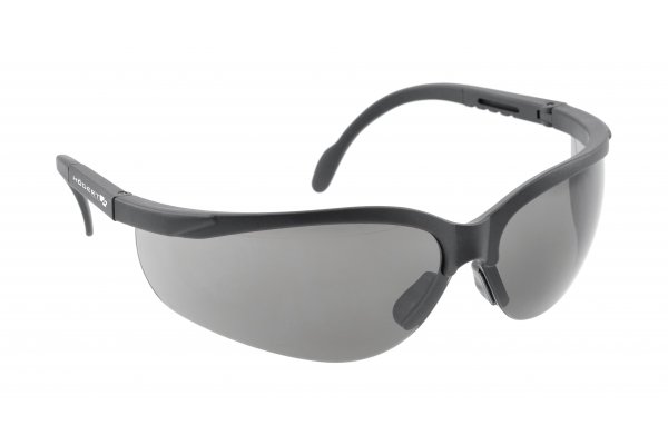 Soczewki okularów wykonane są z ciemnoszarego poliwęglanu, dzięki czemu chronią przed promieniowaniem słonecznym. Szybki są dodatkowo profilowane i zapewniają boczną ochronę oka. Oprawka i regulowane na długość zauszniki wyprodukowane zostały z nylonu w czarnym kolorze, co nadaje okularom modnego wyglądu. Okulary chronią przed odpryskami ciał stałych o niskiej energii powstałymi podczas szlifowania, wiercenia, cięcia, piłowania, kruszenia. Idealnie sprawdzą się w typowych pracach w przemyśle i usługach, budownictwie, warsztatach, leśnictwie, przy pracach gospodarczych i komunalnych. Produkt można stosować z okularami korekcyjnymi. Nie nadaje się do użytku podczas spawania.