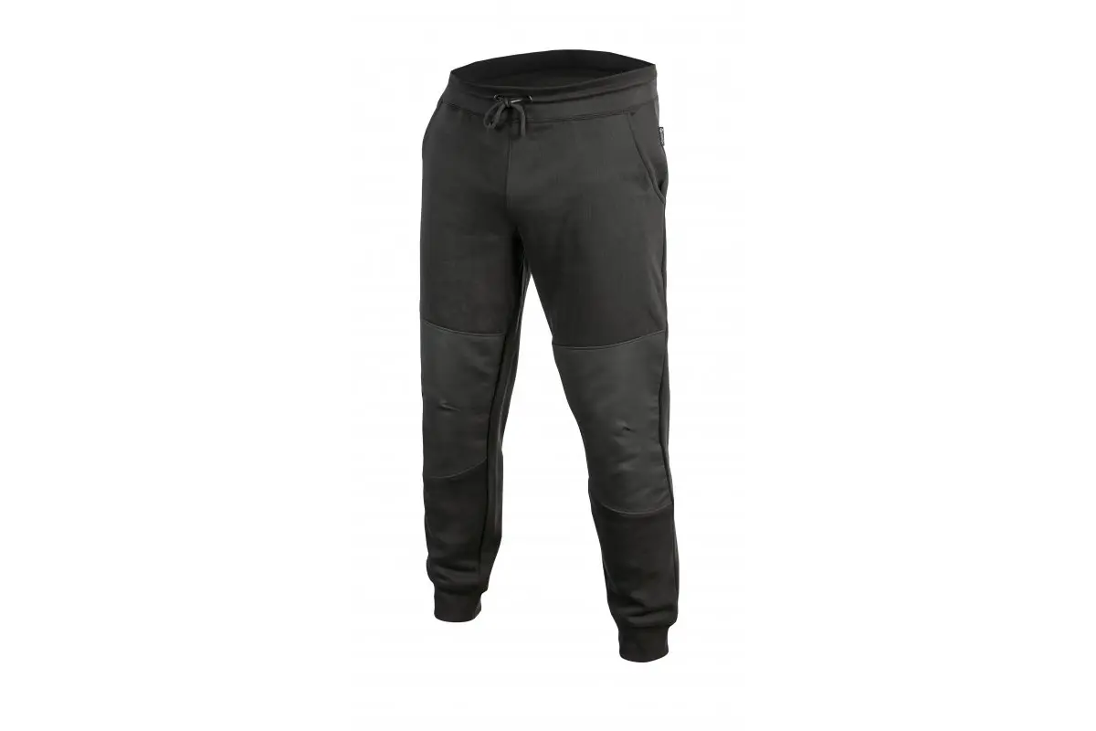 Męskie spodnie dresowe czarne wykonane z najwyższej jakości materiałów. Miękka i przyjemna dzianina zadowoli nawet najbardziej wymagających użytkowników. Natomiast wygodny krój spodni zapewni wygodę podczas noszenia. Spodnie posiadają dwie otwarte kieszenie górne oraz gładki tył. Wysokie ściągacze w mankietach stanowią atrakcyjne dopełnienie modnego kroju.