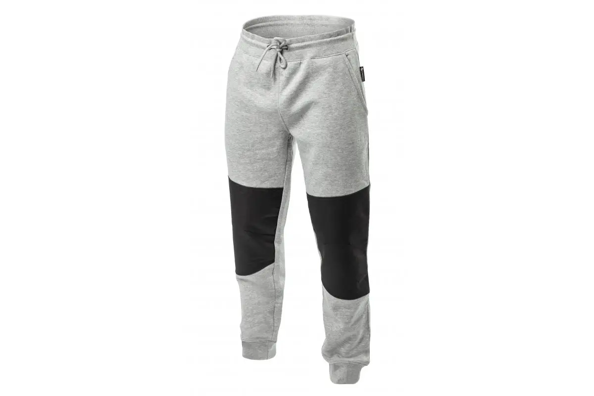 Męskie spodnie dresowe szary melanż wykonane z najwyższej jakości materiałów. Miękka i przyjemna dzianina zadowoli nawet najbardziej wymagających użytkowników. Natomiast wygodny krój spodni zapewni wygodę podczas noszenia. Spodnie posiadają dwie otwarte kieszenie górne oraz gładki tył. Wysokie ściągacze w mankietach stanowią atrakcyjne dopełnienie modnego kroju.