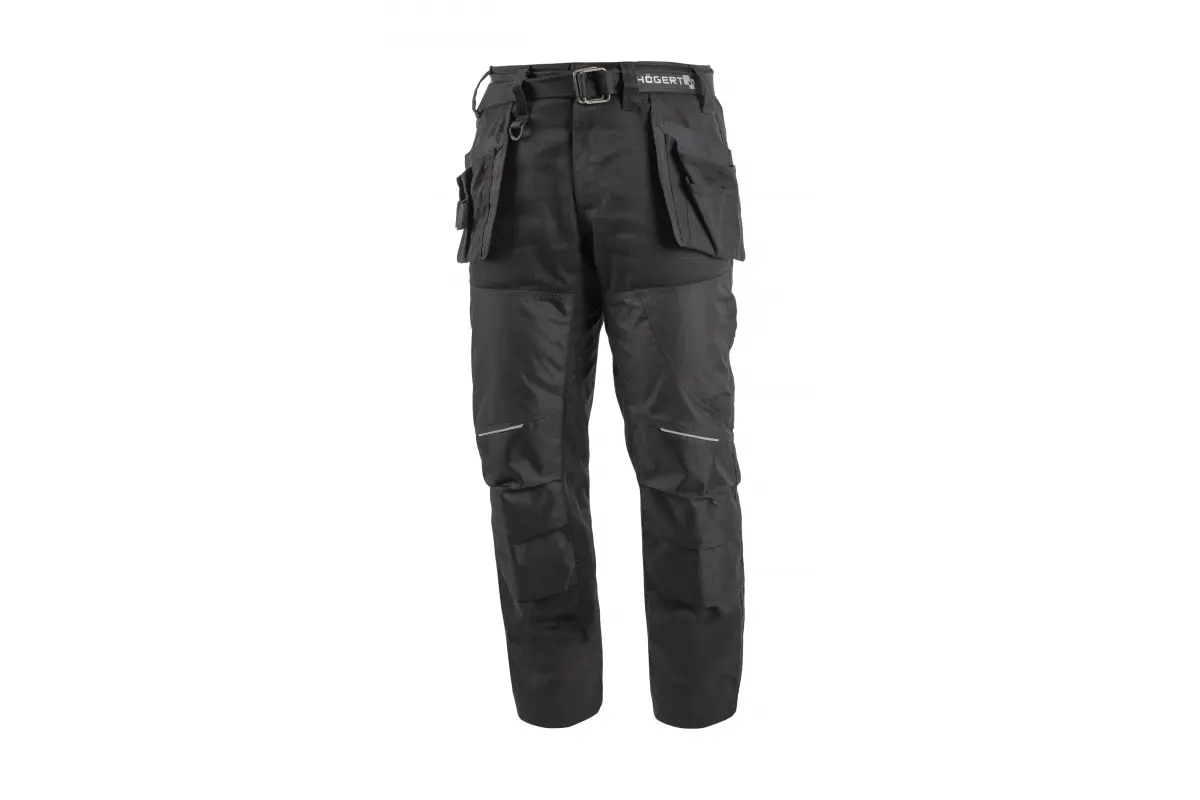 Nowoczesne, męskie spodnie z kaburami czarne NEKAR. Zostały stworzone z materiału Canvas oraz posiadają wzmocnienia z materiału Oxford 600D, dzięki czemu są bardzo wytrzymałe i odporne na zniszczenia. Gwarantują ochronę i komfort podczas pracy. Spodnie zostały wyposażone w elementy odblaskowe, wpływając tym bezpośrednio na bezpieczeństwo pracy po zmroku. Swoją wysoką funkcjonalność zawdzięczają dużej ilości kieszeni – jest ich aż 8 dzięki czemu twoje narzędzia zawsze będą ”pod ręką”. Dodatkowym atutem są również 2 innowacyjne kieszenie z przodu, które w przypadku braku potrzeby używania, można bez problemu schować. Spodnie posiadają przedłużane nogawki, co daje możliwość ich wydłużenia. Przeznaczone dla budowlańców, mechaników, ślusarzy, oraz serwisantów.