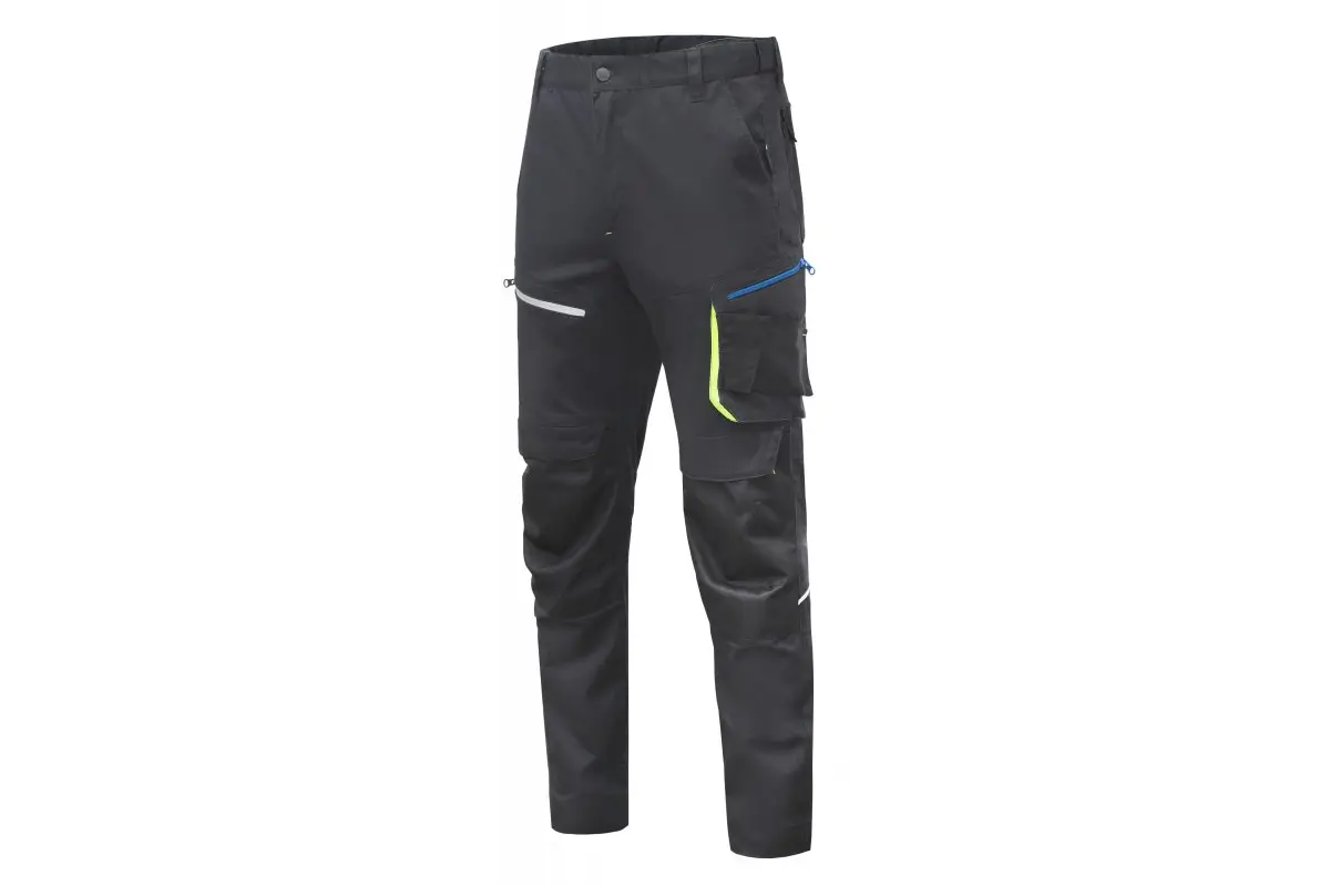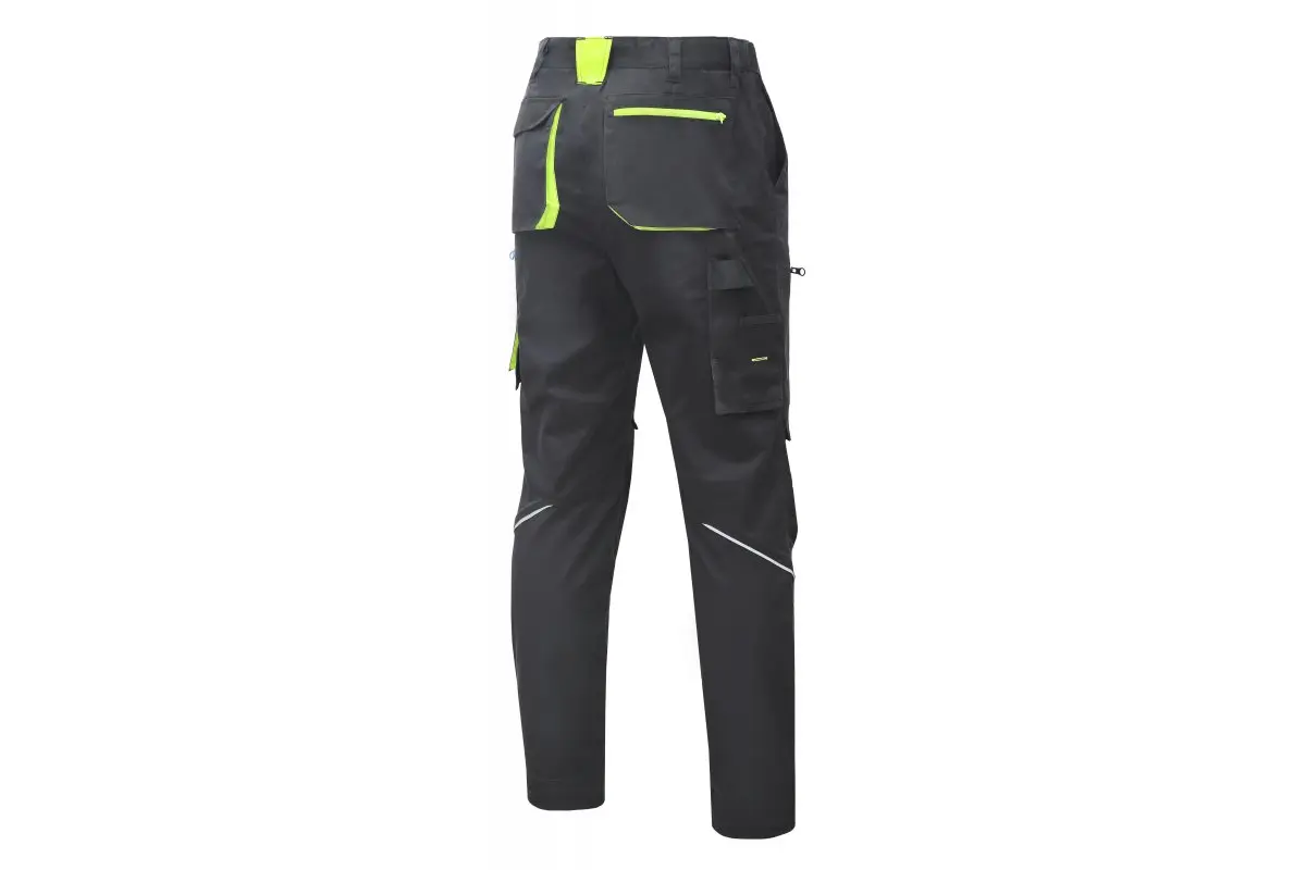 Elastyczne spodnie ochronne REETZ łączą innowacyjny design z funkcjonalnością. Wyraźne, fluorescencyjne akcenty kolorystyczne dodają dynamicznego charakteru, jednocześnie zwiększając widoczność użytkownika. Tkanina TWILL o wysokiej gramaturze zapewnia trwałość i wygodę, jednocześnie pozostając elastycznym. Skład materiału zewnętrznego, obejmujący bawełnę, poliester i elastan, gwarantuje optymalne dopasowanie i komfort noszenia. Wzmocnienia z materiału OXFORD 600D zapewniają dodatkową wytrzymałość w kluczowych obszarach.