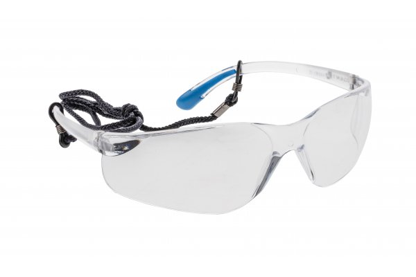 Soczewki okularów wykonane są z bezbarwnego poliwęglanu profilowanego, dzięki czemu zapewniają boczną ochronę oka. Zauszniki wykonane z PC. Okulary chronią przed odpryskami ciał stałych o niskiej energii powstałymi podczas szlifowania, wiercenia, cięcia, piłowania, kruszenia. Idealnie sprawdzą się w typowych pracach w przemyśle i usługach, budownictwie, warsztatach, leśnictwie, przy pracach gospodarczych i komunalnych. Nie nadaje się do użytku podczas spawania. Okulary dodatkowo posiadają w zestawie sznurek, o regulowanej długości z gumowym elementem zaciskowym do okularów przeciwsłonecznych, sportowych i do czytania. Wykonany z wysokiej jakości materiału, solidny i wytrzymały splot. Po obydwu stronach zakończony gumowymi końcówkami, z regulowanym elementem zaciskowym do wszystkich rodzajów okularów.